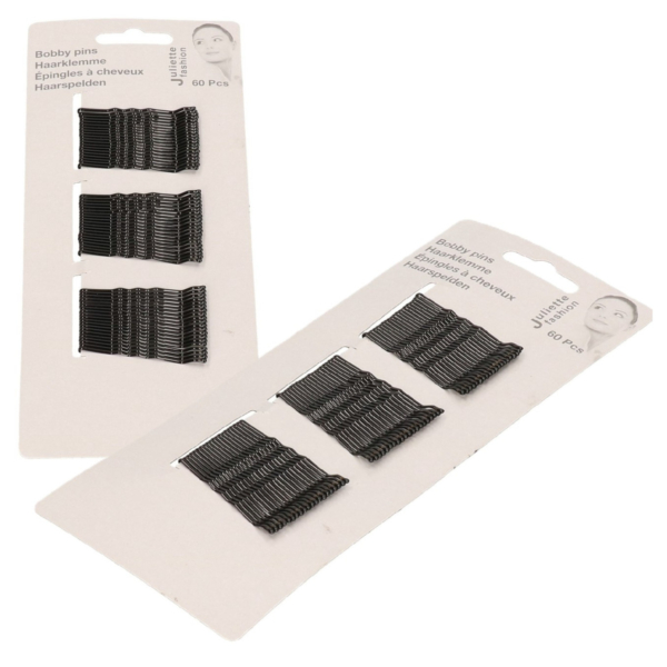 Deze set van zwarte schuifspeldjes is perfect voor het vastzetten en stylen van je haar. De stevige bobby pins zijn geschikt voor dagelijks gebruik en diverse kapsels. Dankzij de mix van 4,3 cm en 6,2 cm heb je altijd het juiste formaat bij de hand.