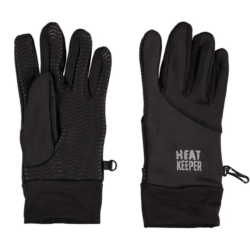 Zwarte thermo handschoenen voor heren. Handschoenen met thermo voering, een trekkoord voor nauwe aansluiting en anti-slip grip rubber aan de binnenzijde van de hand. Ideaal voor bij buitensporten, zoals bijvoorbeeld voetbal.